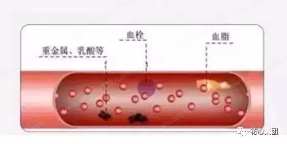 人体血管长度加在一起,可以绕地球两周半。血管管腔非常狭窄,血液中的重金属和油脂结合,形成血栓因子,随着血液的流动在狭窄部位形成阻塞,造成脑血栓、心肌梗塞等血管病。因此水污染的水质也是引发心脑血管疾病的原因之一。
