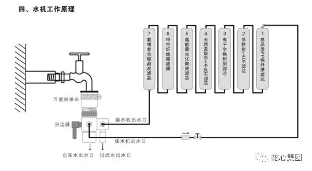 工作原理:采用现代过滤新技术—中空纤维超过滤技术,浓缩和分离自来水中的大分子物质或胶体物质,过滤精度为0.01微米,能高效去除水中的大分子的超微粒子、热源体、病毒、细菌(大肠杆菌、霍乱菌、痢疾菌等),有效的去除细菌达99.9%。彻底清除高分子、有机物、更深层次降低浊度、使饮水更卫生、更安全。